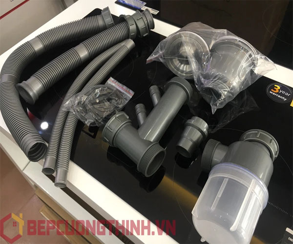 Phụ kiện kèm theo của bộ thoát nước là 2 bát giác và nắp đậy,ống thoát nước,ống nối,gioăng, ống thoát tràn.