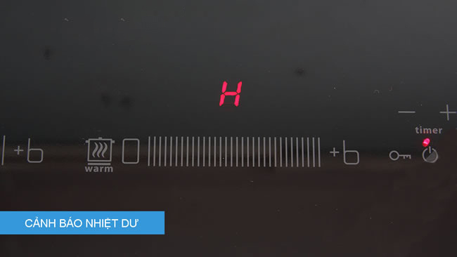 - Với tính năng cảnh báo nhiệt dư: cảnh bảo mặt bếp vẫn còn nóng giúp cho người sử dụng tránh không nên trạm tay vào mặt bếp khi vừa kết thúc quá trình nấu ăn trên mặt bếp đèn LED sẽ thể hiện bằng chữ “H”